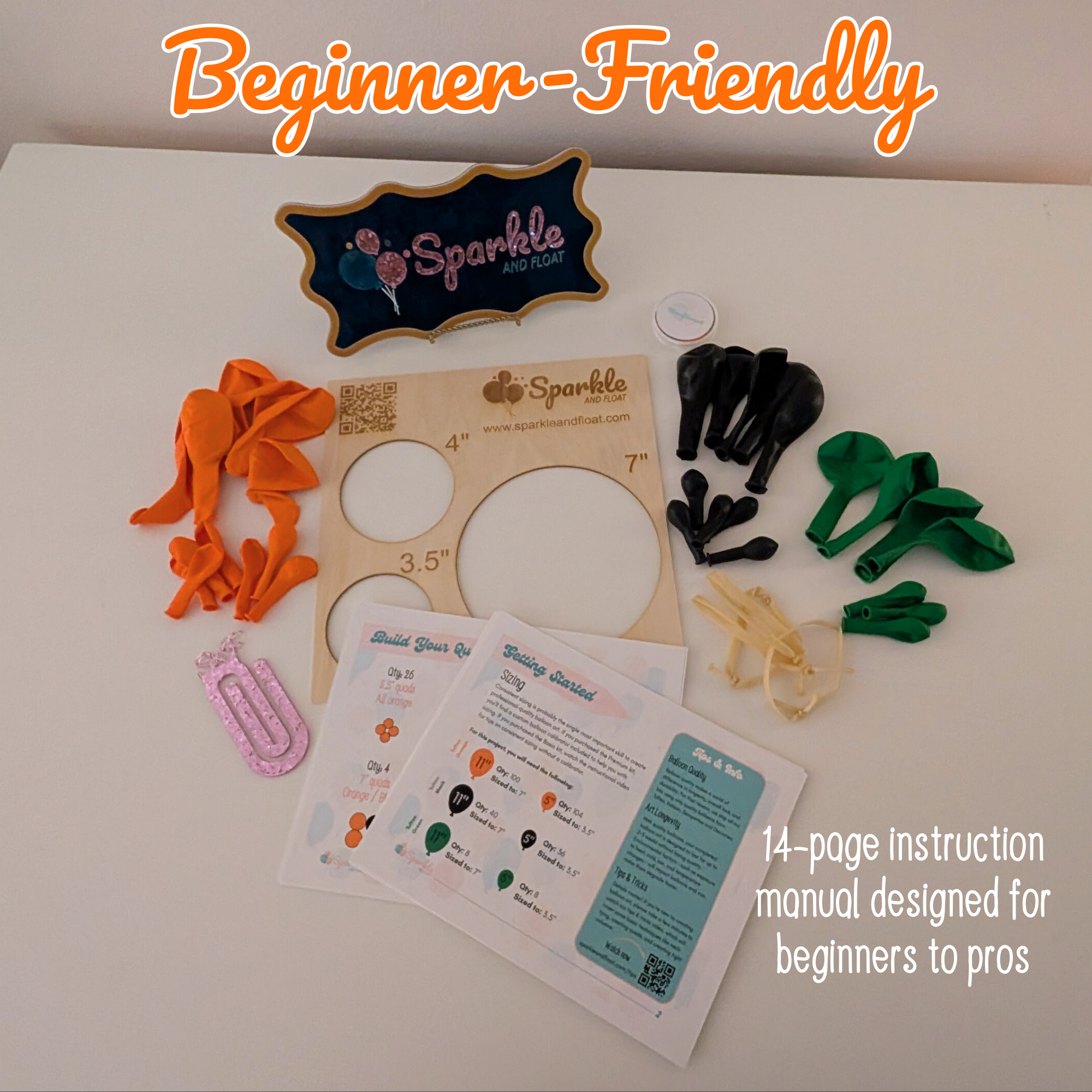 ✔ Custom balloon calibrator to ensure consistent sizing (and instructions on how to use it!)